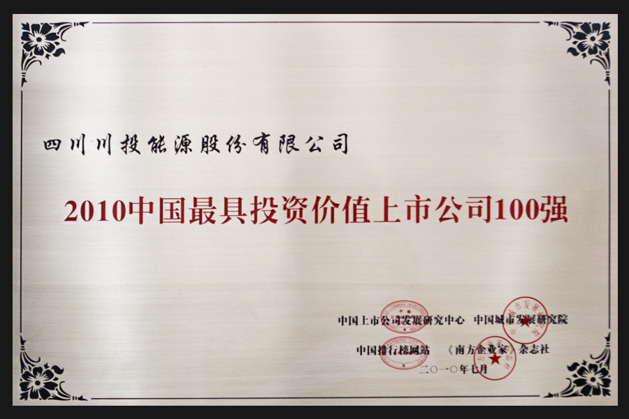 近年來,川投能源備受資本市場(chǎng)和社會(huì)各界青睞,連續(xù)入選滬深300指數(shù)樣本股、中證800指數(shù)樣本股、上證380指數(shù)樣本股、MSCI新興市場(chǎng)指數(shù)、MSCI ACWI全球指數(shù),同時(shí)作為首批中國(guó)A股股票納入富時(shí)全球股票指數(shù)系列和標(biāo)普新興市場(chǎng)全球基準(zhǔn)指數(shù);先后獲得“中國(guó)證券市場(chǎng)年會(huì)金鳳凰獎(jiǎng)”、“中國(guó)上市公司市值管理百家優(yōu)秀公司”、“最守誠(chéng)信上市公司”、“最具投資價(jià)值上市公司”、《上海證券報(bào)》“公司治理資本創(chuàng)新公司獎(jiǎng)”等榮譽(yù);獲得中華全國(guó)總工會(huì)授予的“抗震救災(zāi)恢復(fù)重建工人先鋒號(hào)”、“全國(guó)汶川地震災(zāi)后恢復(fù)重建先進(jìn)集體”;1998—2011年連續(xù)13年獲得“四川省重合同守信用先進(jìn)單位”稱號(hào);2011年8月,榮獲“全國(guó)模范勞動(dòng)關(guān)系和諧企業(yè)”稱號(hào);2011年11月,在《每日經(jīng)濟(jì)新聞報(bào)》聯(lián)合多家媒體和116家機(jī)構(gòu)評(píng)委傾力打造的全國(guó)上市公司“口碑榜”評(píng)選中,被代表市場(chǎng)2萬億元資金的廣大投資者評(píng)選為“最具成長(zhǎng)潛力上市公司”;2011年12月,榮獲上海證券交易所評(píng)選的中國(guó)公司治理最高榮譽(yù)——“2011年度董事會(huì)獎(jiǎng)提名獎(jiǎng)”、“2011年度典型并購(gòu)重組案例獎(jiǎng)提名獎(jiǎng)”;2012年9月,川投能源黨委榮獲“全省創(chuàng)先爭(zhēng)優(yōu)先進(jìn)基層黨組織”稱號(hào); 2015年公司還獲得了由中國(guó)上市公司協(xié)會(huì)、中國(guó)證券投資者保護(hù)基金公司、上海證券交易所、深圳證券交易所、中國(guó)證券業(yè)協(xié)會(huì)、中國(guó)證券投資基金業(yè)協(xié)會(huì)聯(lián)合頒發(fā)的“2015中國(guó)最受投資者尊重的上市公司”入圍獎(jiǎng)。2022年6月,入選中國(guó)上市公司協(xié)會(huì)“2021年度A股上市公司現(xiàn)金分紅榜單豐厚回報(bào)榜”;2023年11月獲得中國(guó)證券報(bào)頒發(fā)的“第二十五屆上市公司金牛獎(jiǎng)·2022年度金信披獎(jiǎng)”;2024年10月被證券時(shí)報(bào)評(píng)選為“主板上市公司價(jià)值100強(qiáng)”。主體信用等級(jí)長(zhǎng)期維持AAA,以優(yōu)良的業(yè)績(jī)持續(xù)回報(bào)投資人,受到國(guó)內(nèi)國(guó)際兩個(gè)市場(chǎng)的高度關(guān)注和價(jià)值認(rèn)可。