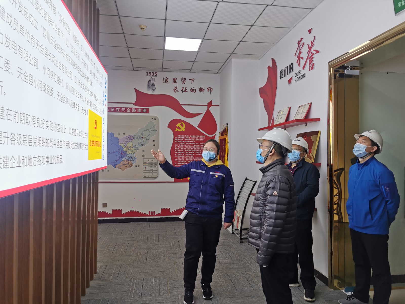 在天全河流域所屬腳基坪電廠熱火朝天的2號機(jī)組A級機(jī)組檢修現(xiàn)場,孫前元一行聽取了腳基坪電廠自主檢修組織機(jī)構(gòu)、檢修安全管理、檢修現(xiàn)場施工情況等方面情況的匯報(bào);隨后,到腳基坪電廠“企地共建示范基地”黨建室進(jìn)行參觀。