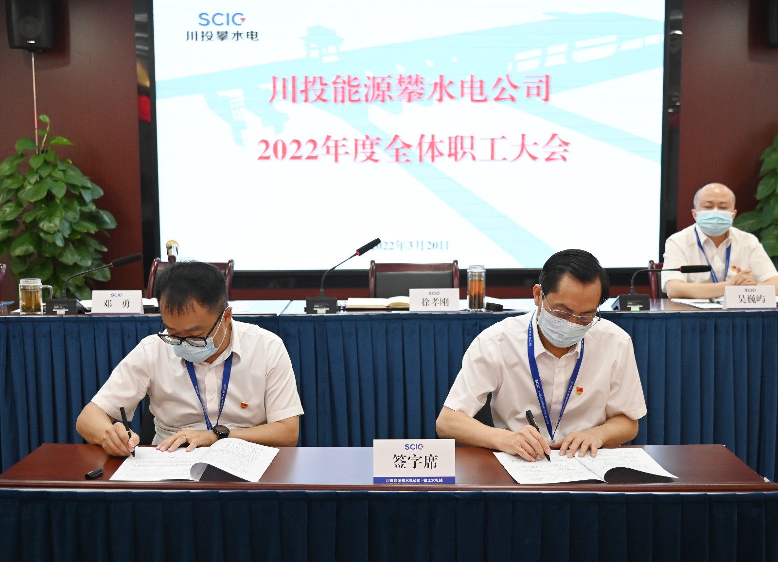 大會(huì)最后審議通過了《工資集體合同》和《女職工權(quán)益保護(hù)專項(xiàng)合同》,川投能源副總經(jīng)理、公司黨總支書記、董事長徐孝剛分別與工會(huì)主席鄧勇、女工委員高力梅簽署了上述集體合同,充分體現(xiàn)了公司高度重視員工福利和女職工切身利益,凝聚了人心,振奮了精神,鼓舞了士氣,堅(jiān)定了信念,為切實(shí)推動(dòng)銀江水電站工程建設(shè)和公司高質(zhì)量發(fā)展貢獻(xiàn)了工會(huì)力量。