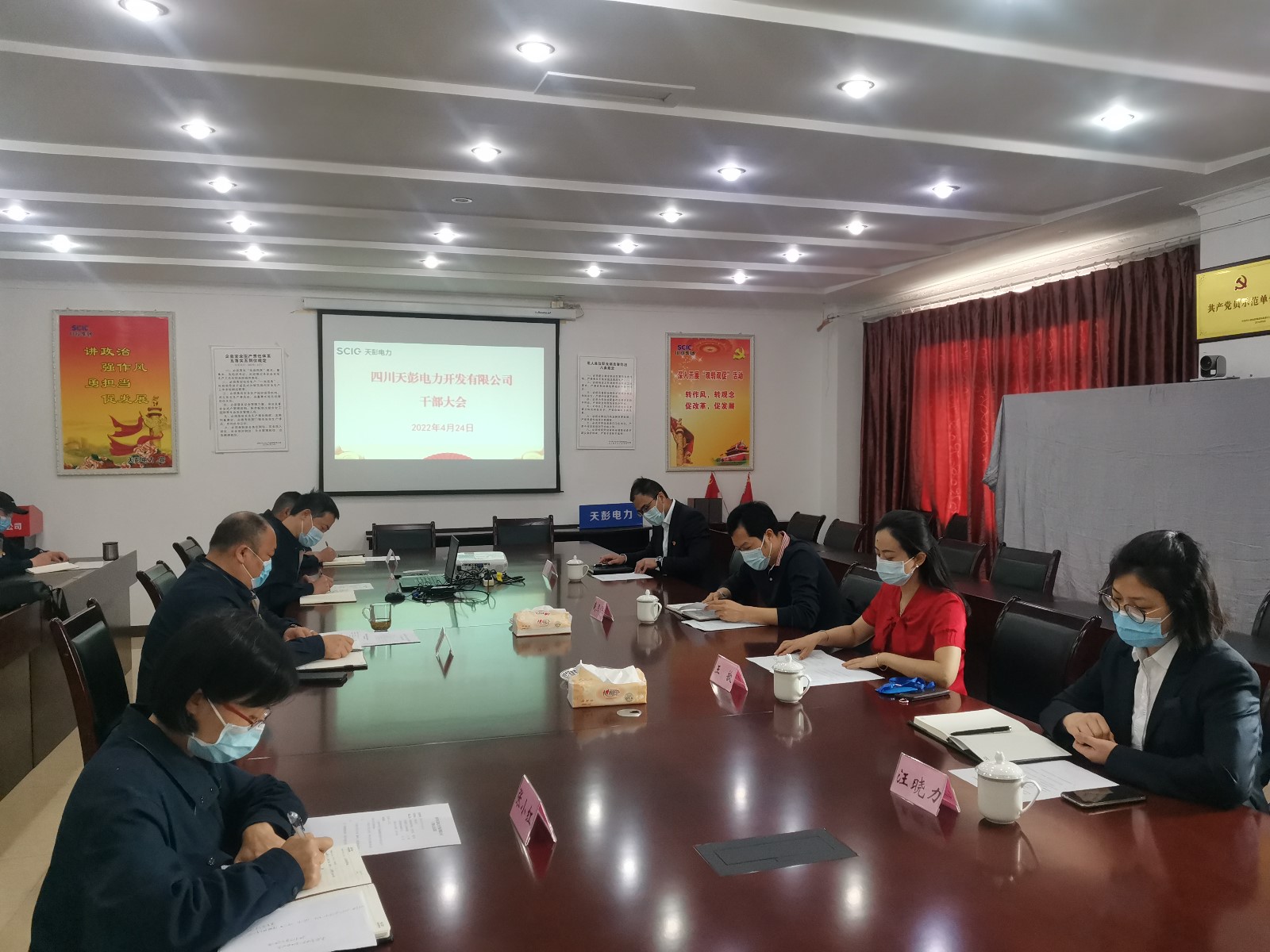 4月24日,天彭電力召開公司干部大會,川投能源黨委委員、紀委書記戴月洪、人力資源部經(jīng)理王歆、紀檢工作部副主任肖堯出席大會,天彭電力領(lǐng)導班子成員、中層以上干部參加會議,會議由王歆主持。
