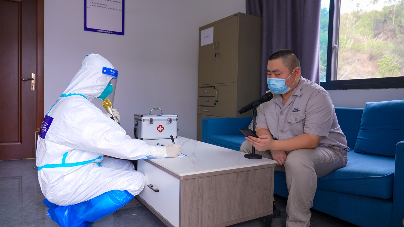 本次演練模擬情景為某日銀江水電站35kV施工變電站員工探親返回攀枝花,在單位內(nèi)接到東區(qū)疾控中心電話通知其在返攀動車上與某確診病例同車廂,被四川省疾控應(yīng)急調(diào)度管理平臺推送為新冠疫情密切接觸者,且有多名同事與其在工作中有近距離接觸。按照公司新冠應(yīng)急預(yù)案對應(yīng)等級規(guī)定,經(jīng)公司疫防辦請示疫防領(lǐng)導(dǎo)小組批準(zhǔn),立即啟動疫情防控重大(II級)響應(yīng)。