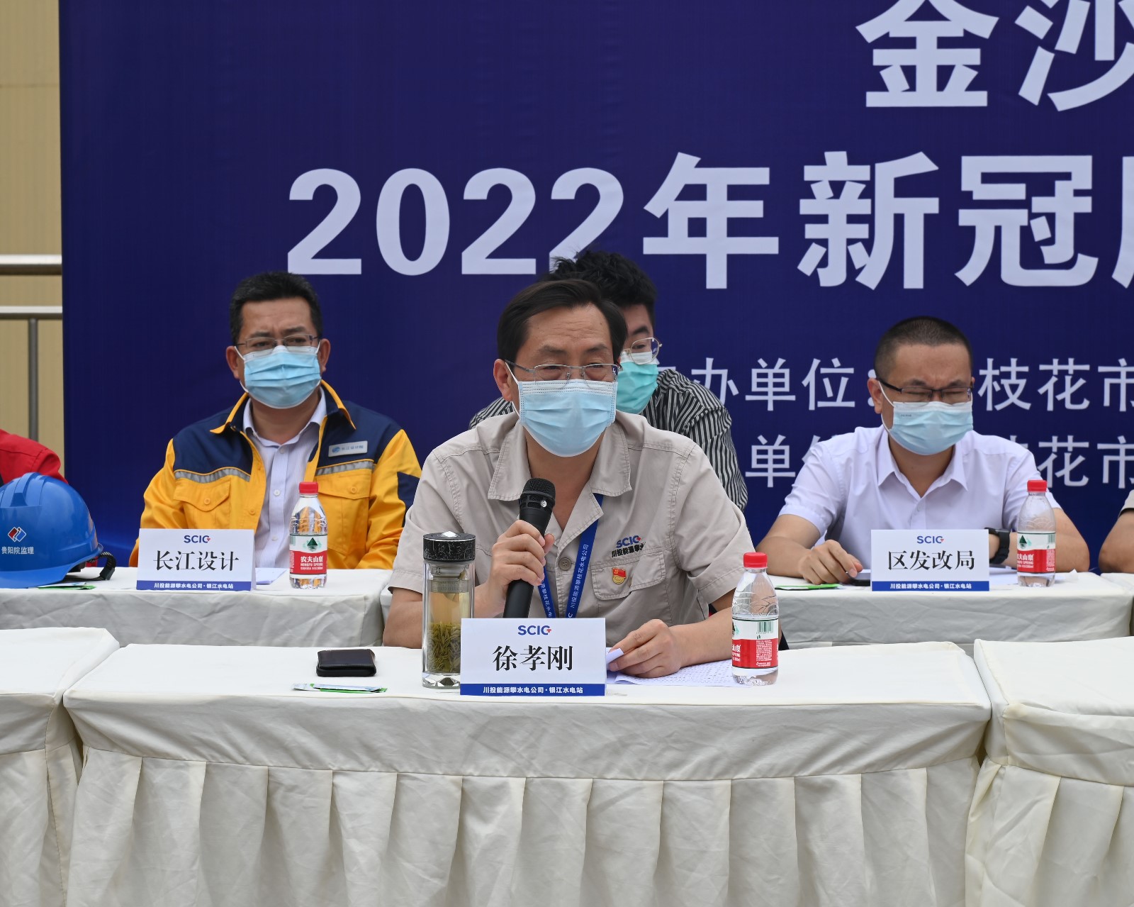為進(jìn)一步做好公司新冠疫情防控工作,強(qiáng)化和提高公司與各參建單位的應(yīng)急處置意識和能力,5月21日上午,攀水電公司與東區(qū)疾控中心在銀江水電站35kV施工變電站聯(lián)合組織開展新冠疫情防控應(yīng)急演練。演練由攀水電公司黨總支委員、總經(jīng)理、疫情防控領(lǐng)導(dǎo)小組副組長吳巍嶼主持,川投能源副總經(jīng)理、攀水電公司黨總支書記、董事長、疫情防控領(lǐng)導(dǎo)小組組長徐孝剛擔(dān)任演練總指揮,攀枝花市東區(qū)政府副區(qū)長王靜,東區(qū)人大黨組副書記、副主任陳康,東區(qū)有關(guān)部門負(fù)責(zé)人和公司疫情防控領(lǐng)導(dǎo)小組主要成員及各參建單位負(fù)責(zé)人到現(xiàn)場觀摩演練。