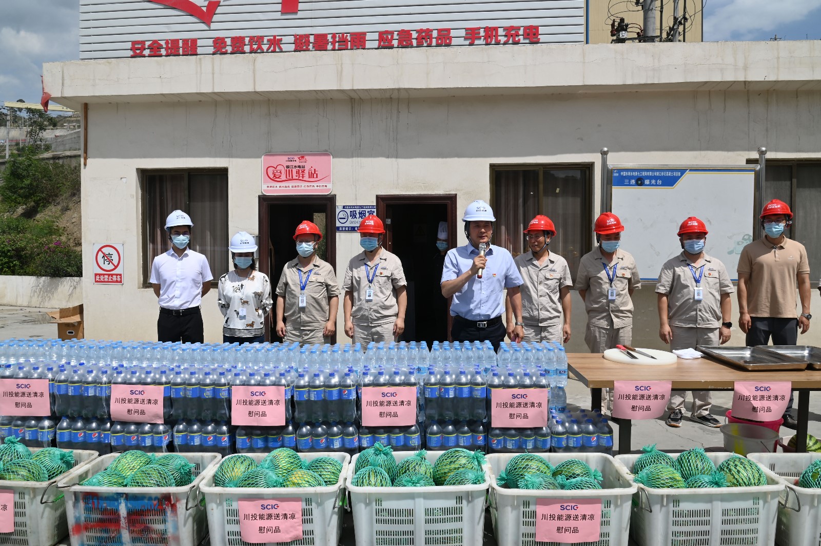 夏至剛過,高溫來襲,攀枝花已進(jìn)入了高溫酷暑季節(jié)。6月22日下午,為落實(shí)全國總工會(huì)《關(guān)于做好2022年職工防暑降溫工作的通知》要求,受川投能源黨委書記、副董事長、總經(jīng)理?xiàng)詈榈奈?,川投能源黨委副書記、工會(huì)主席冉蘭平一行頂著烈日高溫,專程到銀江水電站工地看望慰問堅(jiān)守在高溫酷暑中的一線建設(shè)者。川投能源人力資源部經(jīng)理王歆、紀(jì)檢工作部陳一鳴及攀水電公司領(lǐng)導(dǎo)、志愿者服務(wù)隊(duì)參加慰問。