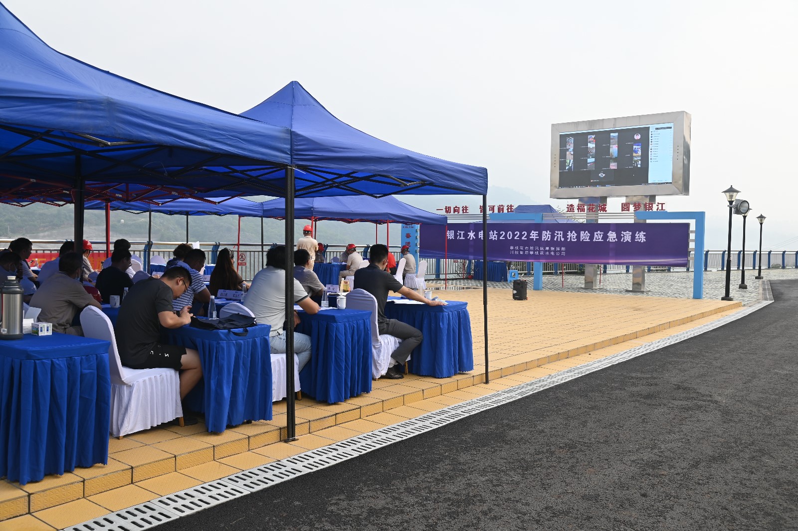 公司全體在攀領(lǐng)導(dǎo)和員工參加了本次演練,市發(fā)展改革委、市應(yīng)急管理局、市自然資源和規(guī)劃局東區(qū)分局、東區(qū)防汛抗旱指揮部、東區(qū)發(fā)改局、東區(qū)應(yīng)急管理局、仁和區(qū)防汛抗旱事務(wù)中心及銀江鎮(zhèn)等單位相關(guān)負(fù)責(zé)同志到場觀摩指導(dǎo)。長江設(shè)計公司、貴陽院監(jiān)理部、二灘建設(shè)監(jiān)理部、水電五局項目部、水電七局項目部、水電十局項目部、四川路橋項目部、水情測報中心、安全監(jiān)測標(biāo)等150余人參加了本次演練。