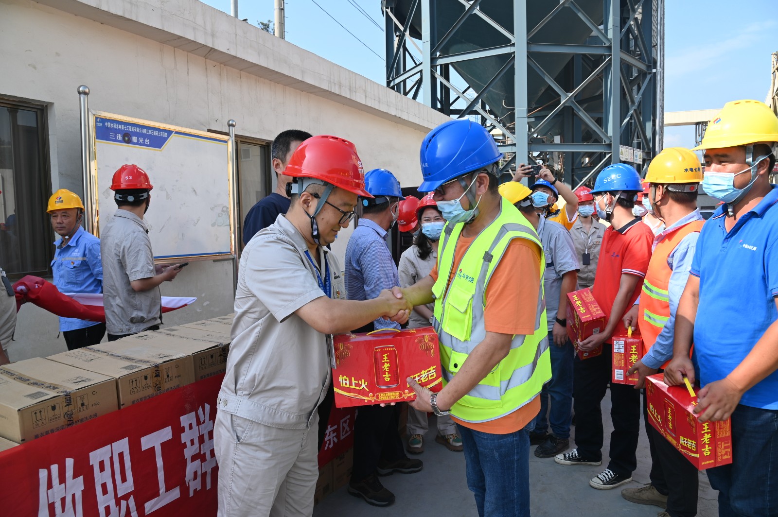 夏日送清涼,溫情暖心坎。本次活動為在烈日“烤”驗下辛勤勞作的工友們送上清涼飲料、沐浴露、洗衣液、毛巾、紙巾等防暑降溫物資300余份,參建單位長江設計、貴陽院監(jiān)理、二灘建設監(jiān)理、華東院環(huán)水保監(jiān)理、水電五局、水電七局、水電十局、四川路橋等工友代表接受慰問。通過此次慰問活動,工友們在炎炎酷暑中感受到了深深的關愛和舒心的涼意,大大激發(fā)了工作熱情,大家紛紛表示不懼艱難不怕高溫,將以更加堅定飽滿的“銀江精神”投身于工程建設,以實際行動和工作成效向黨的二十大交出滿意的“銀江答卷”。