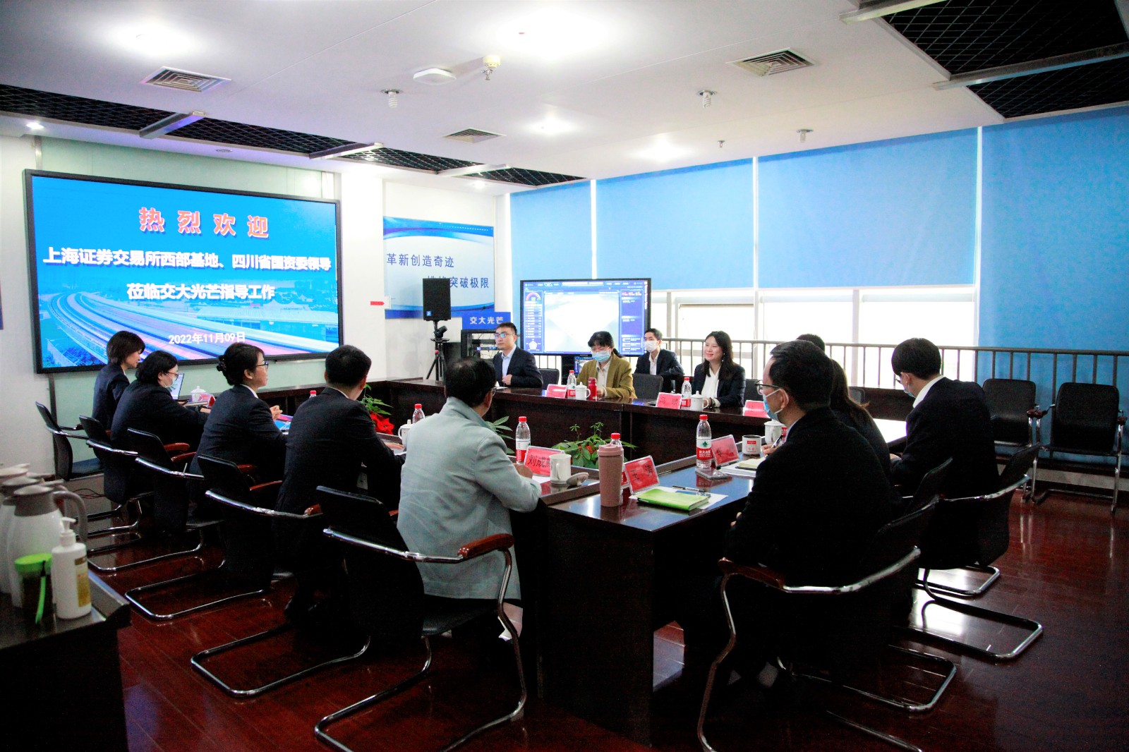 11月9日,上海證券交易所西部基地市場發(fā)展部資深專家馮晴,四川省國資委企業(yè)改革處副處長梅潔一行蒞臨交大光芒調(diào)研指導(dǎo)工作。川投集團(tuán)總經(jīng)理助理、資本運(yùn)營部部長龔圓,資本運(yùn)營部專員張弋奎,川投能源董事會秘書魯晉川陪同調(diào)研。會議由交大光芒董事長梁濤主持。