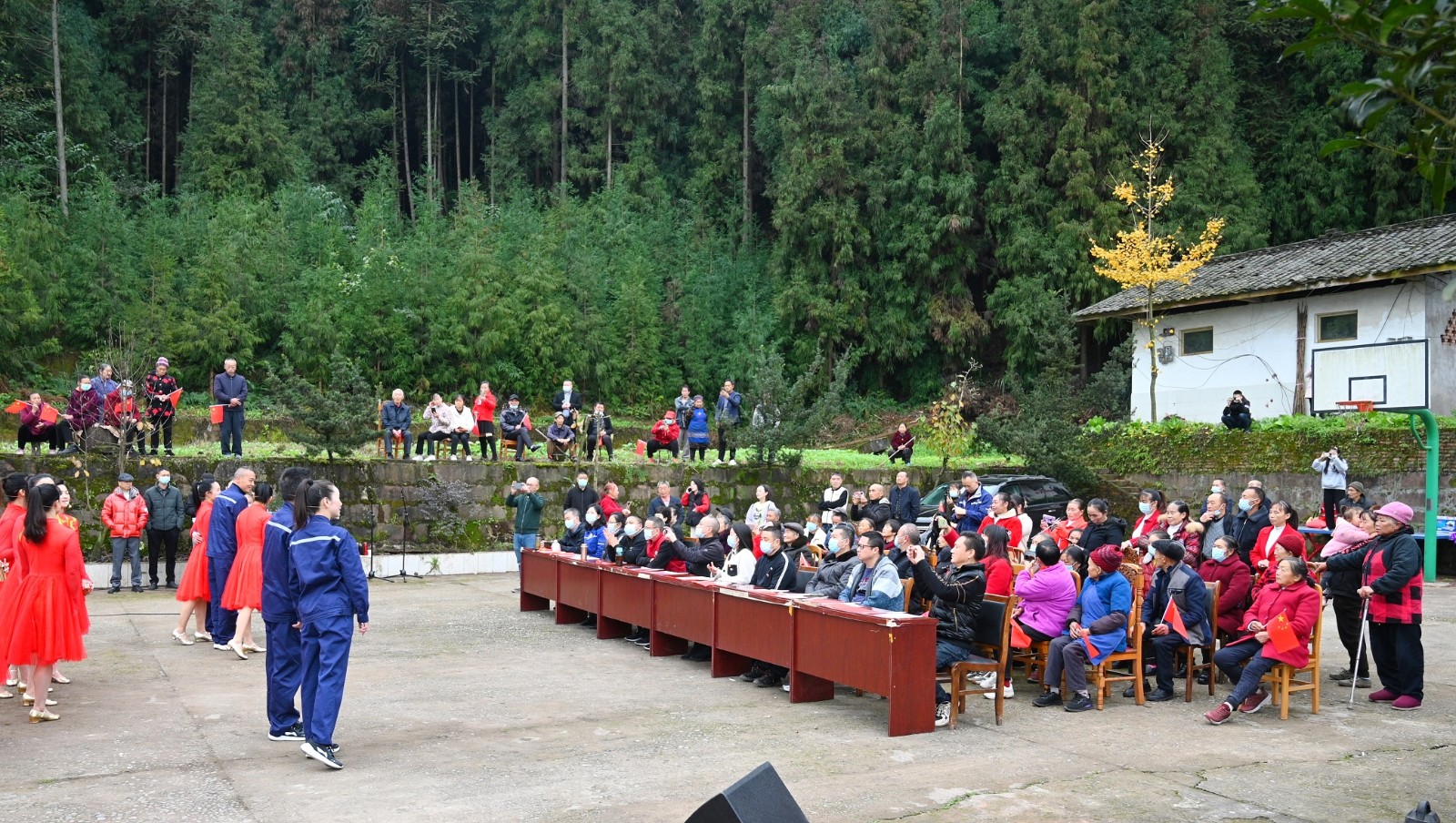 活動(dòng)當(dāng)天,文山村民不顧寒冬凜冽的冷風(fēng),早早來到現(xiàn)場等待。在音樂快板《向著第二個(gè)百年奮斗目標(biāo),前進(jìn)!》中拉開了宣講活動(dòng)的序幕,村民們?cè)诟挥懈腥玖Φ目彀迓曋?,再一次重溫了黨的二十大精神要點(diǎn),文山村民表演的擁軍花鼓和快板《二十大精神譜新篇》讓大家對(duì)中國共產(chǎn)黨為解放全中國所付出的犧牲和努力,心懷感激,并對(duì)美好的未來生活充滿無限期待。最后,全體宣講隊(duì)員用一曲歌伴舞《領(lǐng)航》將此次表演推向了高潮。全體村民為宣講隊(duì)員精彩的演出熱烈鼓掌,也為這場走進(jìn)鄉(xiāng)村的宣講活動(dòng)畫上了圓滿的句號(hào)。