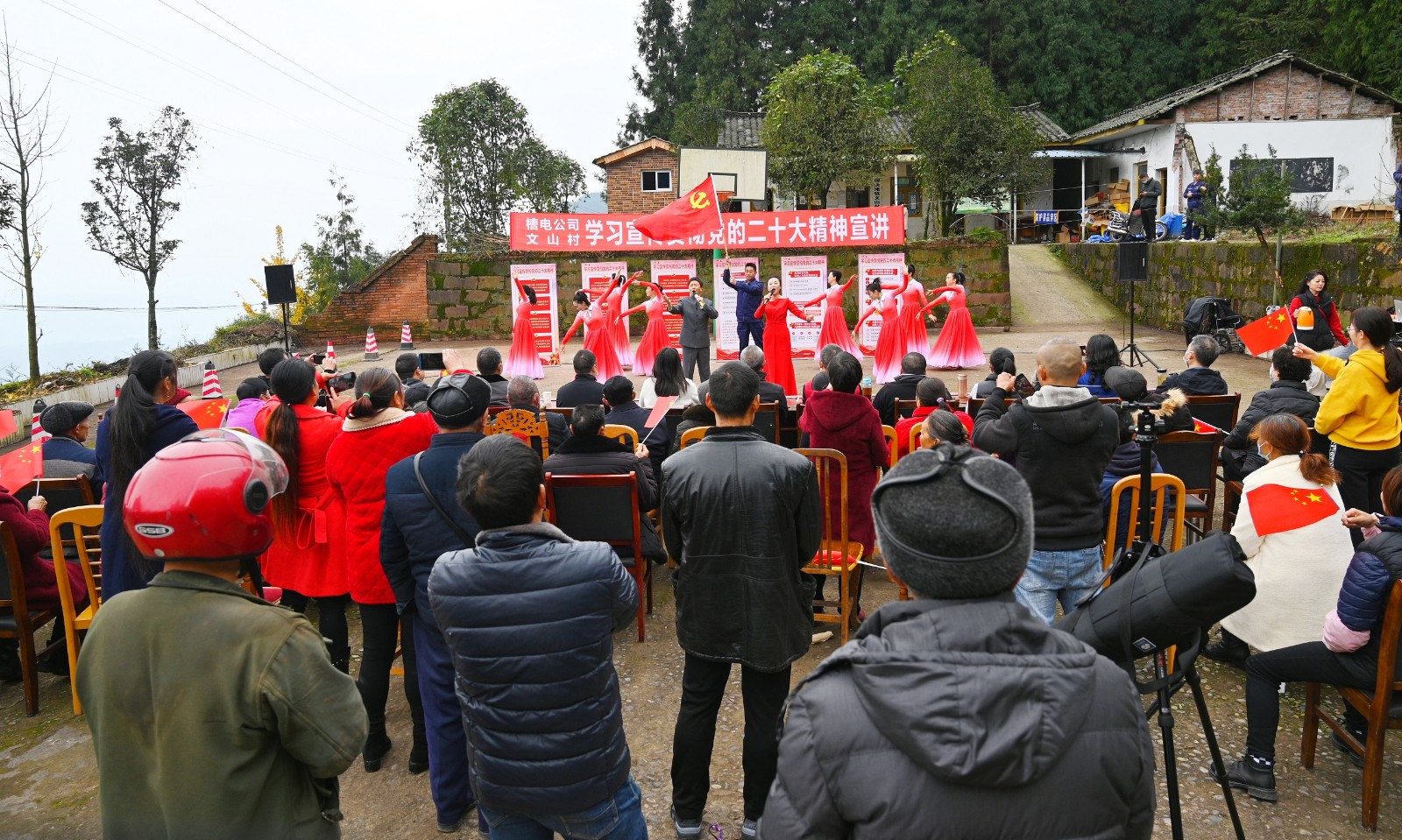 10月底,公司黨委為了把黨的二十大報(bào)告中關(guān)于全面推進(jìn)鄉(xiāng)村振興,關(guān)于發(fā)展鄉(xiāng)村特色產(chǎn)業(yè),拓寬農(nóng)民增收致富渠道,鞏固拓展脫貧攻堅(jiān)成果,增強(qiáng)脫貧地區(qū)和脫貧群眾內(nèi)生發(fā)展動(dòng)力具體精神在文山村生根發(fā)芽,通過與文山村委溝通,公司宣講隊(duì)決定用群眾喜聞樂見的方式,為村民宣傳貫徹黨的二十大精神。
