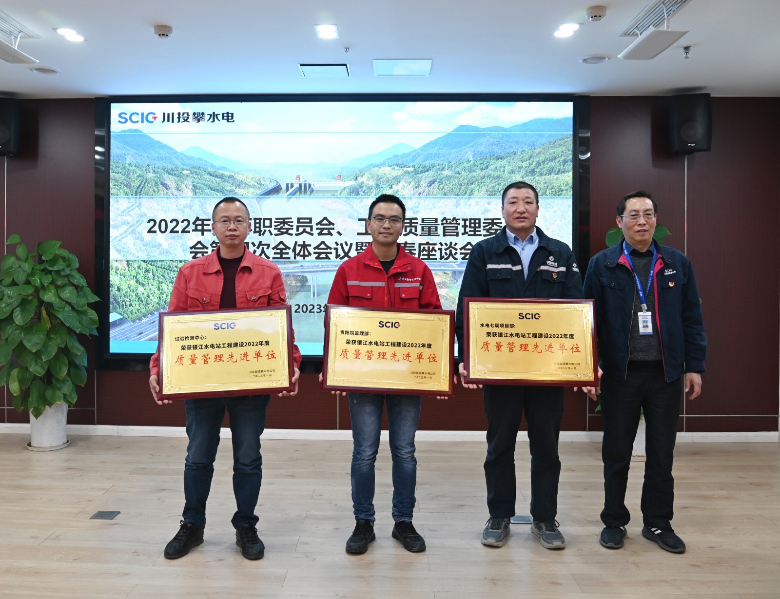 會上,公司黨總支副書記、董事會秘書、工會主席鄧勇宣讀了《關(guān)于表彰銀江水電站2022年度質(zhì)量管理先進單位、先進集體和先進個人的通報》文件,徐孝剛向榮獲2022年度質(zhì)量管理先進單位的試驗檢測中心、貴陽院監(jiān)理部、水電七局項目部頒發(fā)了獎牌,公司總經(jīng)理助理兼工程管理部經(jīng)理嚴瑞平向先進集體代表頒發(fā)了獎牌。吳巍嶼組織參會人員向獲獎的單位、集體及個人表示了祝賀,要求其在今后的質(zhì)量管理工作中發(fā)揮好先鋒模范帶頭作用,促進各參建單位共同提高質(zhì)量管理水平,把銀江水電站建設(shè)成“精品工程、樣板工程、陽光工程”。
