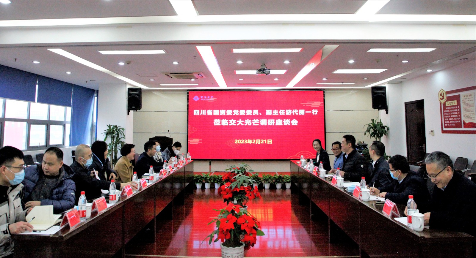 2月21日,省國資委黨委委員、副主任游代麗率隊赴交大光芒調(diào)研指導(dǎo)工作,省國資委巡視員符定平、財務(wù)監(jiān)督與評價處、監(jiān)督工作處、企業(yè)改革處一同參加調(diào)研。川投集團財務(wù)總監(jiān)黃勁、資金財務(wù)部部長葉光明隨同調(diào)研。交大光芒黨總支書記、總經(jīng)理劉成輝以及經(jīng)營班子成員、黨總支委員參加調(diào)研座談會。