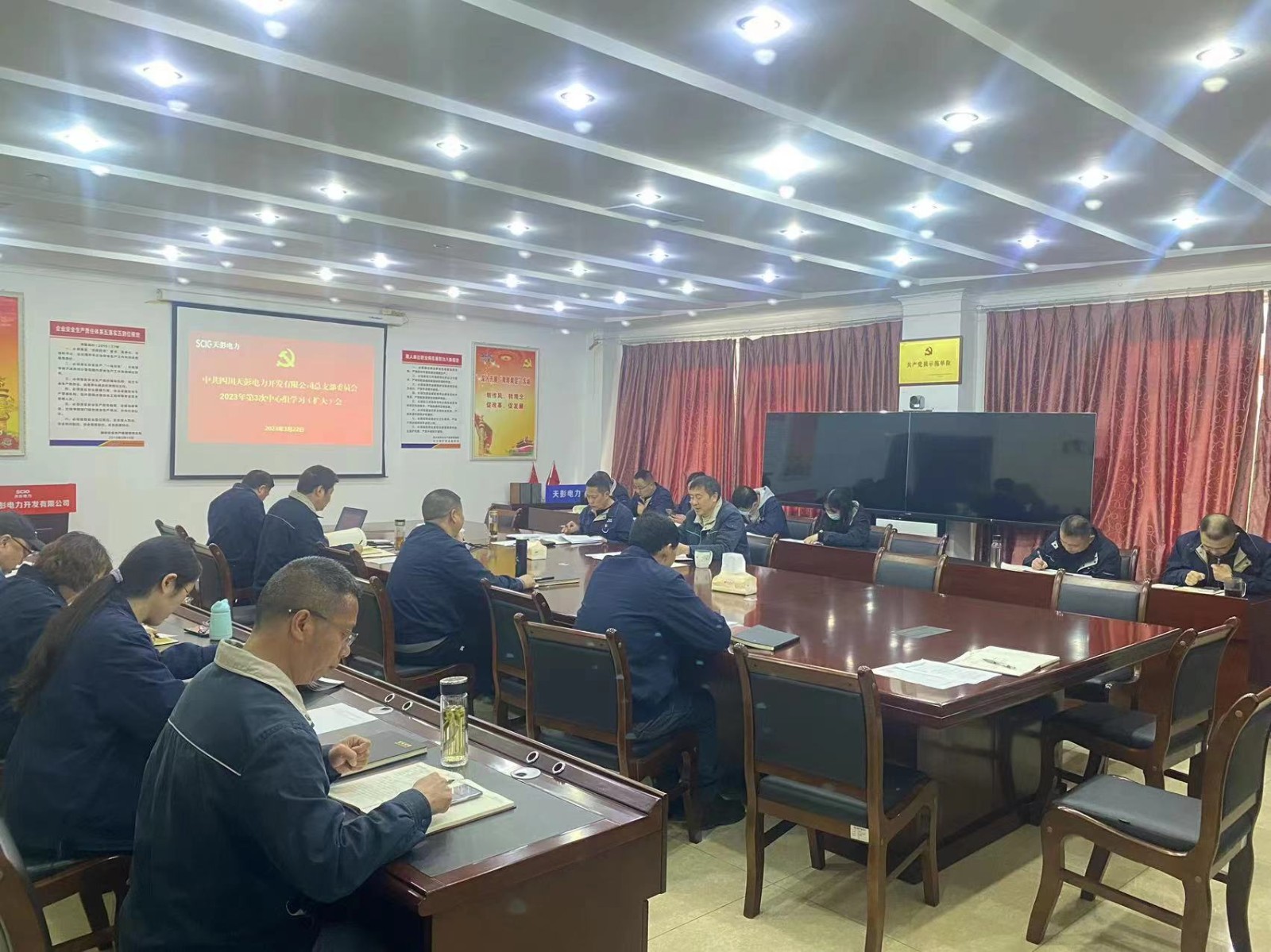 3月22日上午,川投電力黨委所屬天彭電力黨總支召開2023年第3次黨總支理論中心組學習會,專題學習研討全國兩會精神。公司領(lǐng)導、黨員干部、關(guān)鍵崗位人員參加會議,會議由公司黨總支書記、總經(jīng)理劉紅兵主持。