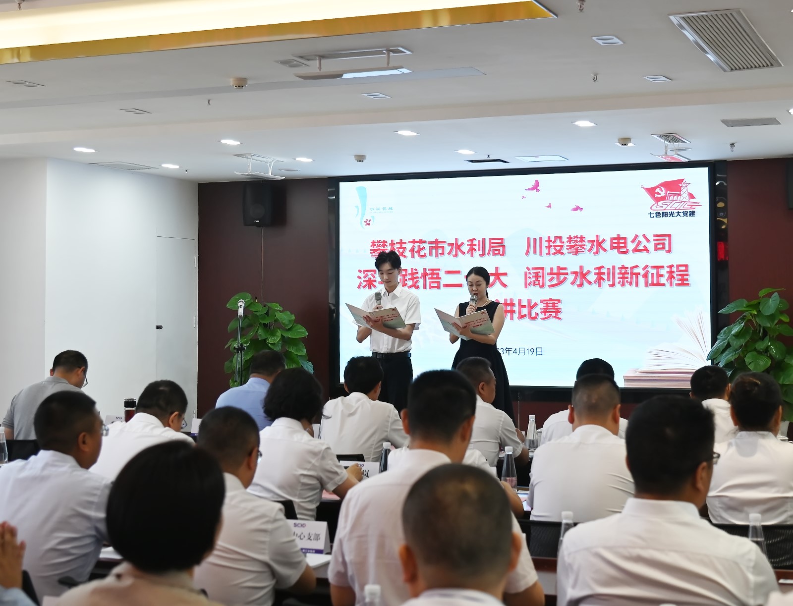 為全面貫徹黨的二十大精神,扎實(shí)開展學(xué)習(xí)貫徹習(xí)近平新時(shí)代中國特色社會(huì)主義思想主題教育,在攀水電黨總支開展主題教育領(lǐng)導(dǎo)干部讀書班期間,為豐富學(xué)習(xí)形式,營造濃厚學(xué)習(xí)氛圍,近日,攀水電公司與攀枝花市水利局共同舉辦了“深學(xué)踐悟二十大、闊步水利新征程”深化“水潤花城”黨建品牌建設(shè)暨政企黨組織共建活動(dòng),開展征文和演講比賽。攀枝花市直機(jī)關(guān)工委常務(wù)副書記鮮明,攀枝花市水利局黨組成員、副局長林兆東,黨組成員、機(jī)關(guān)黨委書記胡嘉,川投能源副總經(jīng)理、攀水電公司黨總支書記、董事長、攀新能源董事長徐孝剛及讀書班成員參加此次活動(dòng)并擔(dān)任評(píng)委。