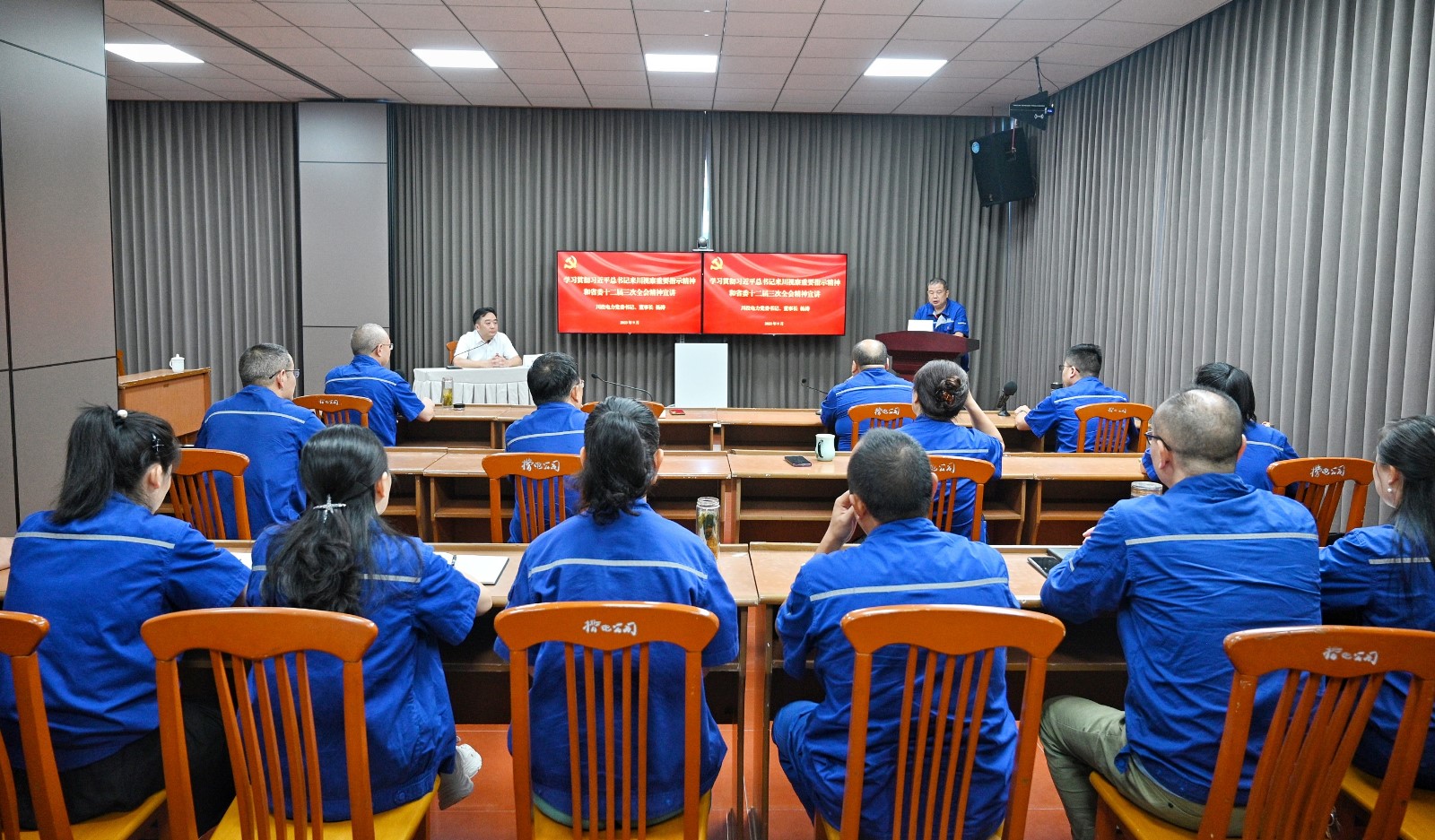 按照省委、集團黨委和川投電力黨委有關(guān)工作要求,9月15日上午,川投電力黨委書記、董事長楊濤到槽漁灘公司開展習(xí)近平總書記來川視察重要指示精神和省委十二屆三次全會精神宣講。宣講會由槽漁灘公司黨委書記、董事長何光富主持。