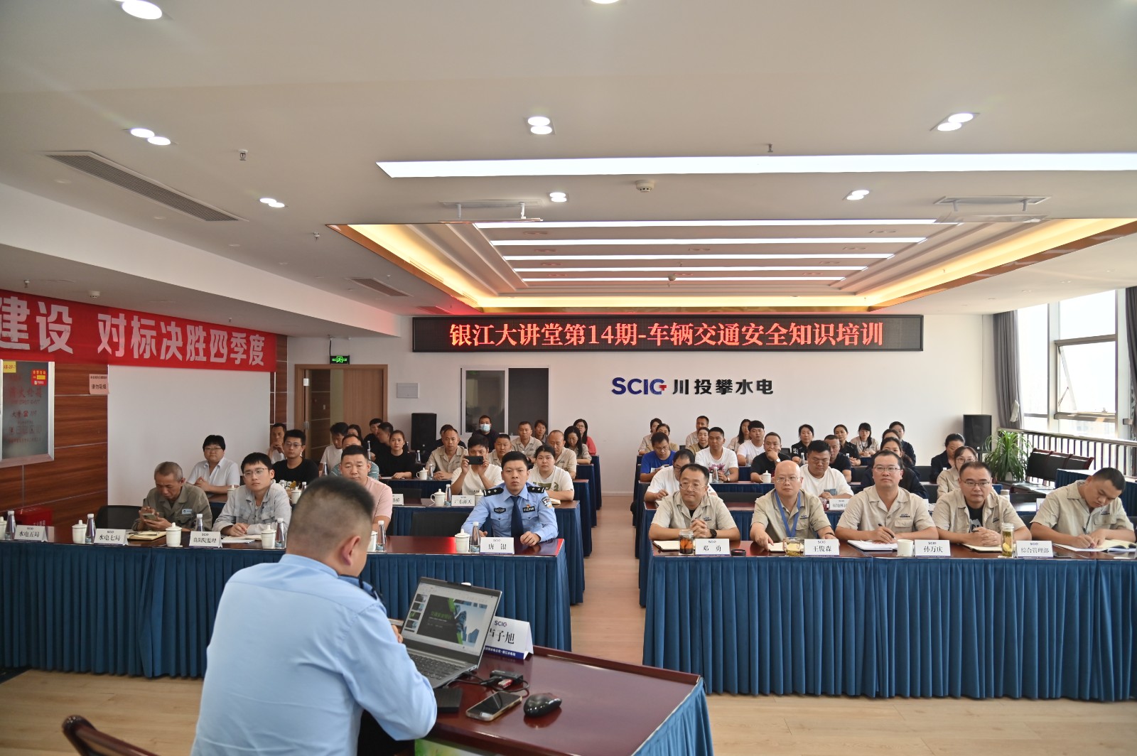 為全面做好銀江水電站安全生產(chǎn)各項工作,強化各單位安全生產(chǎn)工作主體責任意識,切實做好車輛交通安全管理工作,10月23日,攀水電公司舉辦2023年第14期“銀江大講堂”——車輛交通安全專題培訓,邀請攀枝花市交警支隊三大隊事故民警唐銀、宣傳民警盧子旭主講,公司在攀領(lǐng)導、各部門員工、各參建單位有關(guān)管理人員及駕駛員共計50余人參加。