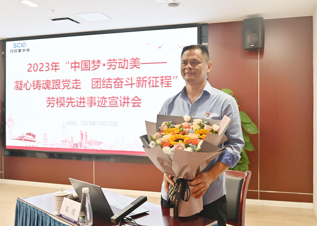 鮮花獻勞模,匠心永流傳。宣講會后,公司職工代表將一捧熱情洋溢的鮮花送到鄧健手中,向勞模獻上崇高的敬意和溫暖的慰問。通過聆聽勞模的宣講,與會職工紛紛表示受益匪淺、深受鼓舞,將以先進典型為榜樣,積極學習勞模工匠不怕苦、不怕累、勇于奮斗、敢于爭先的榜樣精神,把黨的二十大精神轉化為干事創(chuàng)業(yè)的強大動力,以更加昂揚的奮進姿態(tài),切實做好本職工作,努力為銀江水電站建設和公司高質量發(fā)展做出力所能及的貢獻。下一步,公司工會將以深入學習宣傳黨的二十大精神為契機,以大力弘揚勞模精神、工匠精神為抓手,繼續(xù)組織勞模宣講,將勞模精神和先進事跡帶到職工身邊,送進職工心中,激勵和動員廣大職工凝聚勞動熱情、激發(fā)創(chuàng)造活力、奮力建功新時代。