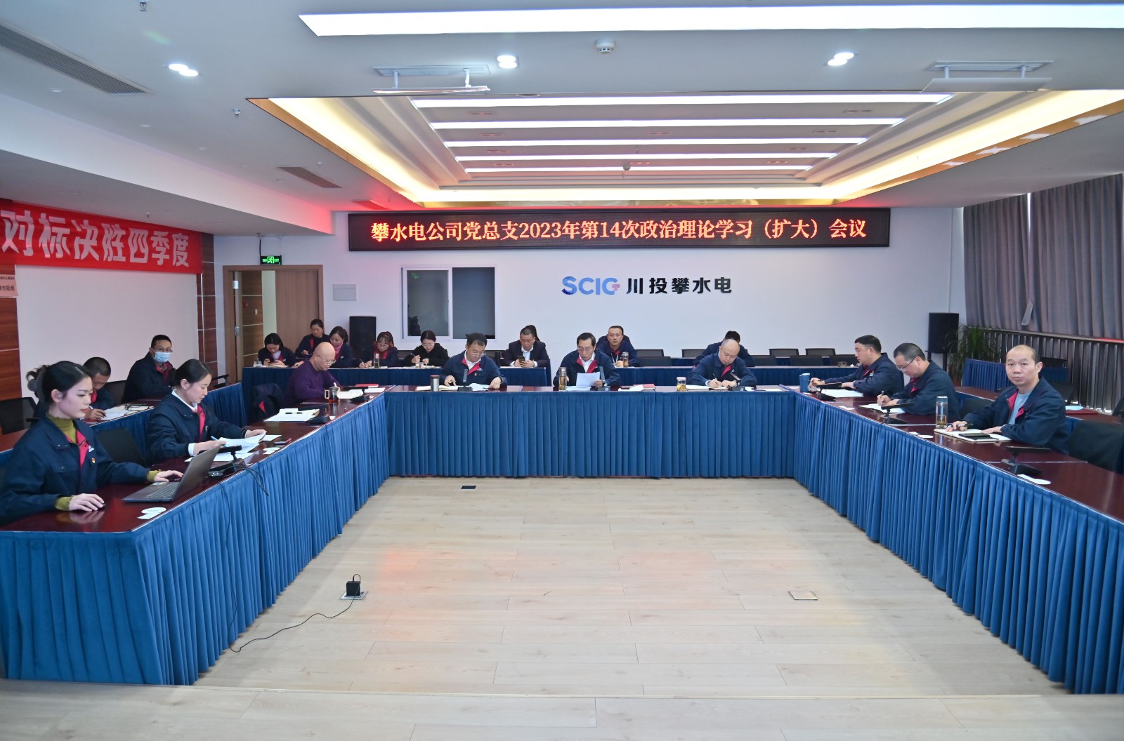 12月23日,攀水電黨總支在2620會(huì)議室召開了2023年第14次政治理論學(xué)習(xí)(擴(kuò)大)會(huì)議,會(huì)議由川投能源副總經(jīng)理、攀水電公司黨總支書記、董事長徐孝剛主持,黨總支政治理論學(xué)習(xí)會(huì)成員、各部門負(fù)責(zé)人、其他黨員、統(tǒng)戰(zhàn)對(duì)象、入黨積極分子共30余人參加學(xué)習(xí)。