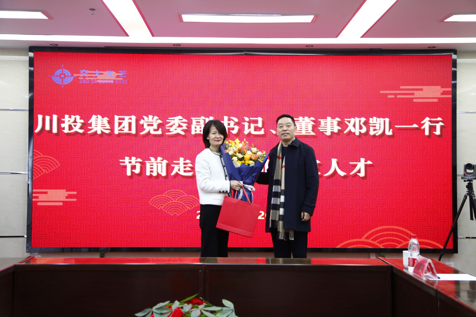 1月26日,川投集團(tuán)黨委副書記、董事鄧凱帶隊(duì)赴交大光芒走訪慰問專家人才。川投集團(tuán)機(jī)關(guān)黨委書記、黨委組織部部長(zhǎng)朱莉,黨委宣傳部(群團(tuán)工作部)部長(zhǎng)何金輝參加走訪慰問。川投能源黨委委員、財(cái)務(wù)總監(jiān)兼交大光芒董事長(zhǎng)劉好一同參加走訪慰問。