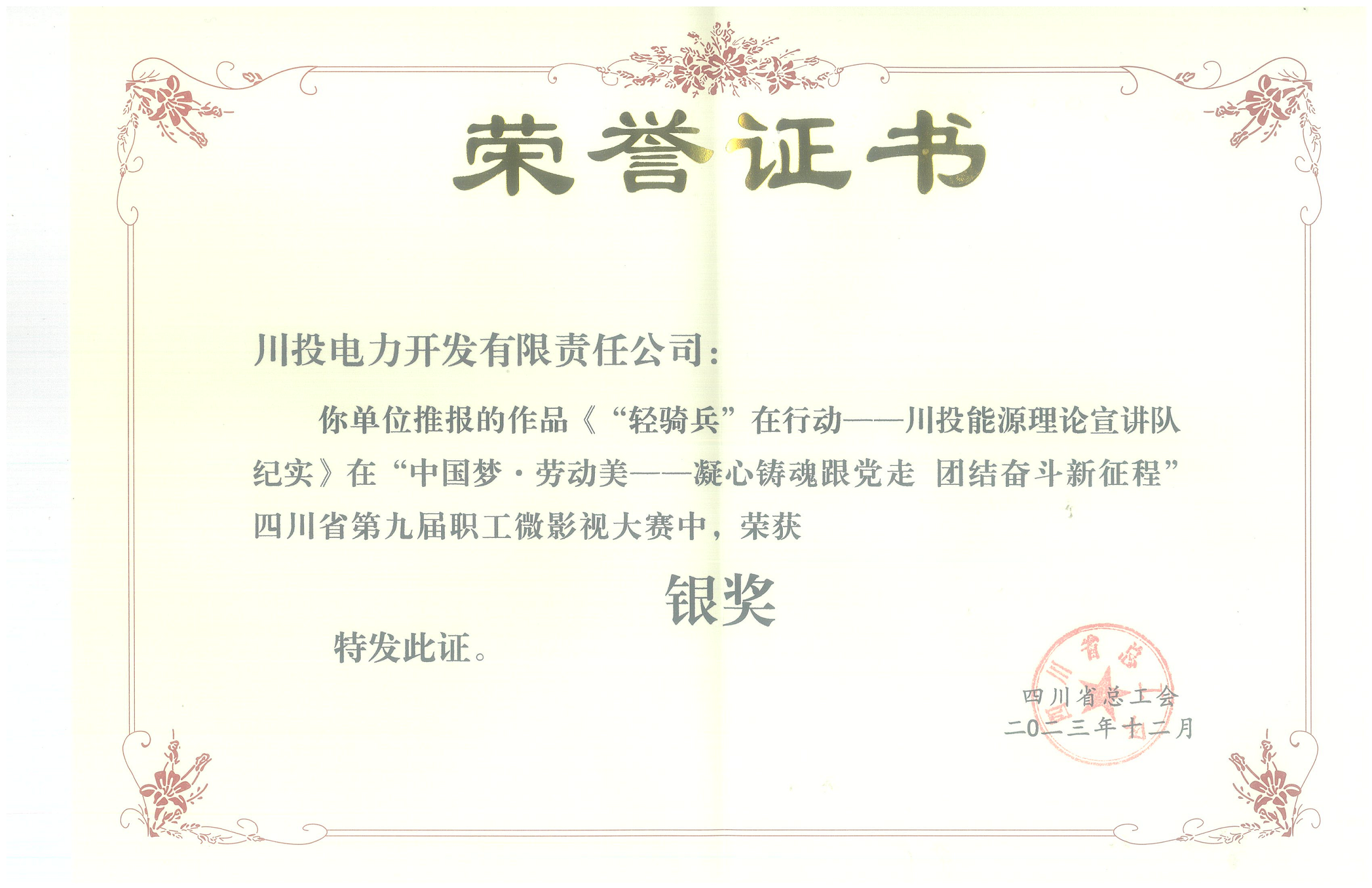 近日,“中國夢·勞動美——凝心鑄魂跟黨走 團結奮斗新征程”四川省總工會第九屆職工微影視大賽活動落下帷幕,由川投集團工會選送、川投能源及所屬川投電力組織拍攝的微電影《“輕騎兵”在行動——川投能源理論宣講隊紀實》在全省176部作品中脫穎而出,榮獲故事類微電影銀獎。
