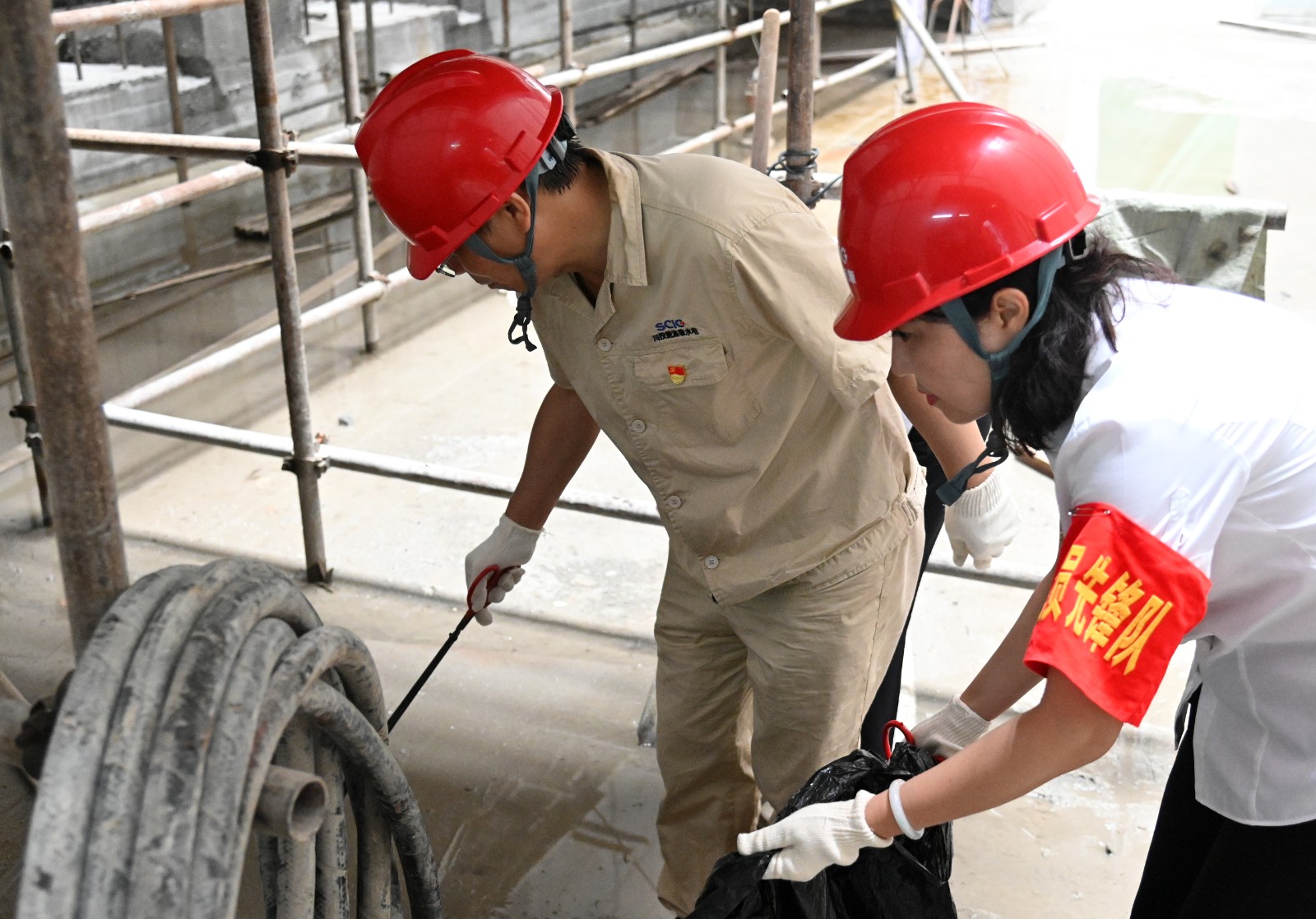 大家來(lái)到銀江水電站壩頂施工通道,對(duì)現(xiàn)場(chǎng)吊裝點(diǎn)及各施工作業(yè)面衛(wèi)生清潔區(qū)域進(jìn)行了清掃分工,各支部黨員同志沖鋒在前,主動(dòng)帶領(lǐng)其他黨員同志、志愿者對(duì)銀江水電站壩頂、壩頂至安裝間通道、安裝間、副廠房等區(qū)域進(jìn)行了衛(wèi)生清掃、垃圾清運(yùn),并協(xié)調(diào)了臨時(shí)堆放物資、安裝構(gòu)建的整理吊裝等,為后期轉(zhuǎn)子支架到達(dá)現(xiàn)場(chǎng)營(yíng)造了整潔、便捷的環(huán)境。