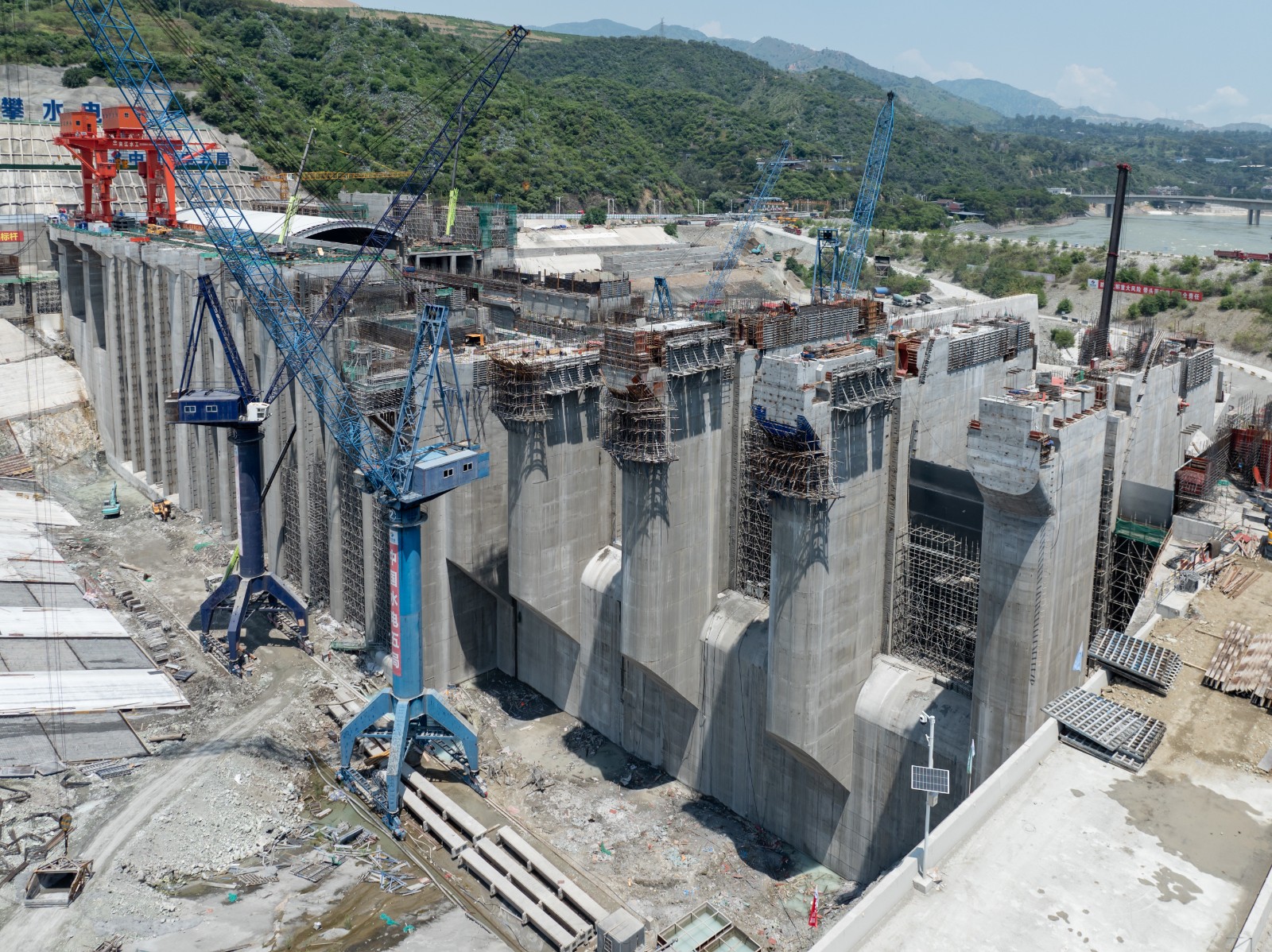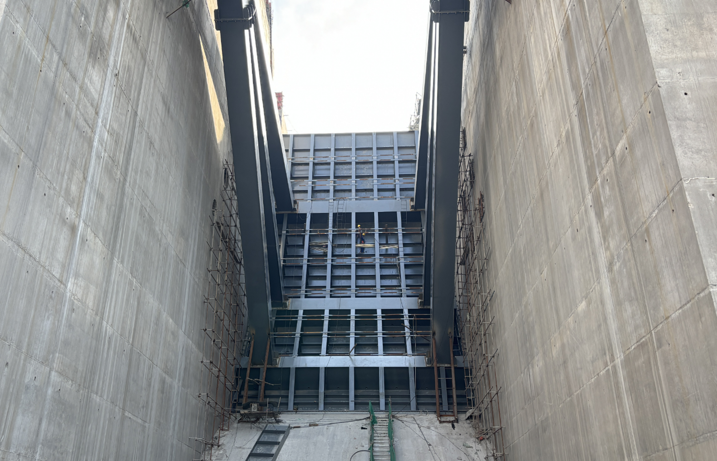 徐孝剛表示,金屬結(jié)構(gòu)安裝是實(shí)現(xiàn)工程下閘蓄水目標(biāo)的核心任務(wù),自7月下旬首節(jié)弧形工作門(mén)吊裝以來(lái),在不到3個(gè)月的時(shí)間內(nèi),將要完成近萬(wàn)噸的安裝工程量,工期緊、任務(wù)重、難度大,參建各方超前謀劃、提前部署,深入開(kāi)展設(shè)計(jì)及施工優(yōu)化,多次專(zhuān)題研討安裝方案并組織專(zhuān)家論證,突破多項(xiàng)常規(guī)方法,采取鋼絞線提升裝置安裝尾水事故檢修門(mén)、臨時(shí)平臺(tái)配合汽車(chē)吊站位安裝弧形工作門(mén)、門(mén)槽安裝及其二期混凝土澆筑工序循環(huán)優(yōu)化等一系列超常規(guī)措施,大幅縮短了安裝工期,取得了階段性成果,希望各參建單位持續(xù)保持昂揚(yáng)斗志、乘勢(shì)而上,協(xié)同并進(jìn)、合力攻堅(jiān),為全面實(shí)現(xiàn)工程建設(shè)目標(biāo)不懈奮斗。
