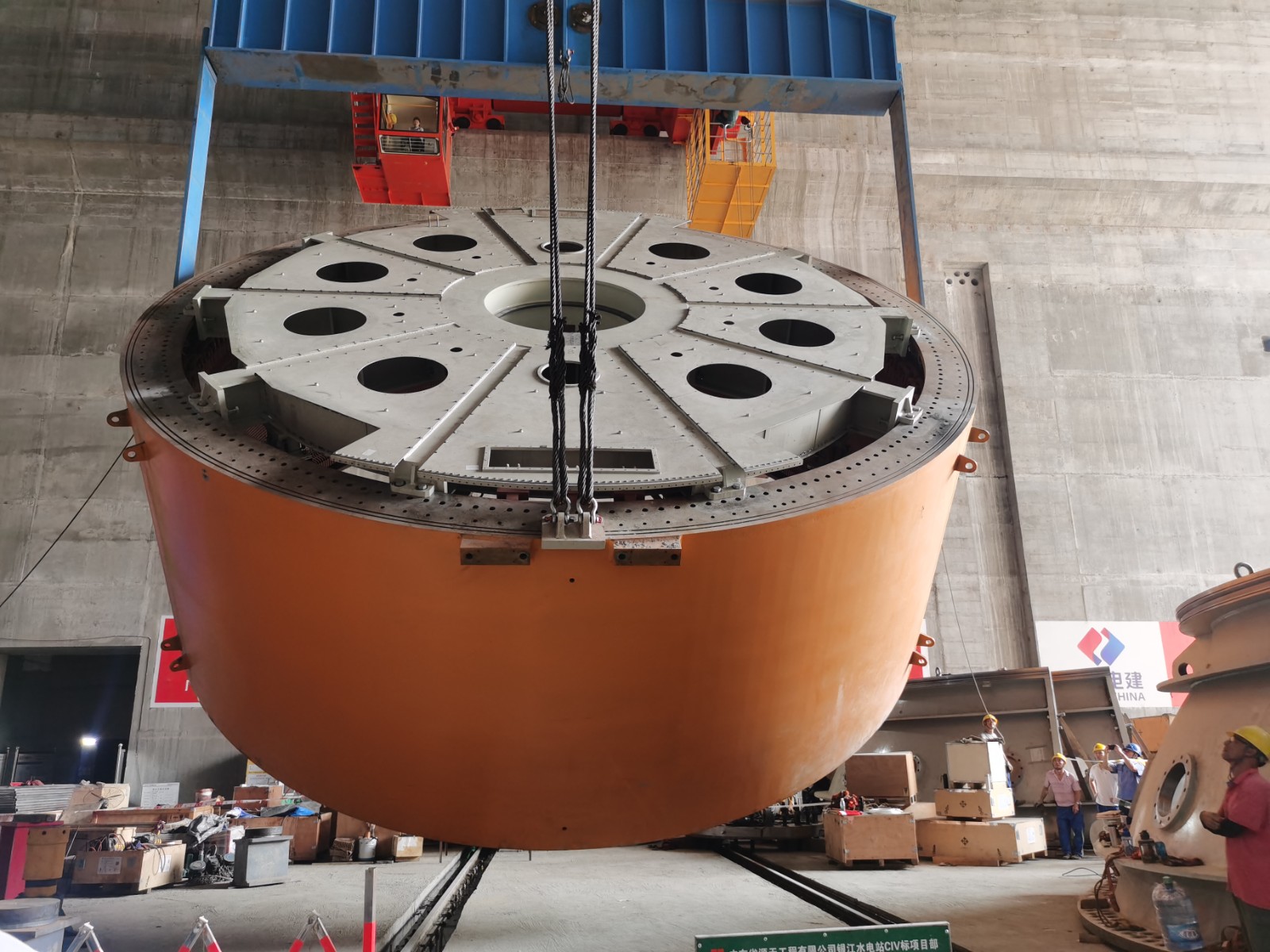 穩(wěn)中求快,加速建設(shè)。在銀江水電站的建設(shè)現(xiàn)場,機器轟鳴,焊花四濺,一片繁忙景象。攀水電公司在確?!胺€(wěn)”的堅實基礎(chǔ)上,積極踐行“快”的要求,以只爭朝夕的緊迫感,全力加快項目建設(shè)進(jìn)度。隨著機電安裝作業(yè)面的全面鋪開,工期緊、任務(wù)重的挑戰(zhàn)擺在眼前,攀水電公司果斷采取一系列有力措施,加大人員和設(shè)備投入,增加施工班組,延長作業(yè)時間,提高工作效率。2024年8月29日下午,在銀江水電站的機電安裝現(xiàn)場,氣氛熱烈而緊張,隨著定子的精準(zhǔn)吊裝到位,標(biāo)志著首臺機組安裝取得了重大進(jìn)展。目前銀江水電站首臺機組導(dǎo)水機構(gòu)、主軸、組合軸承、轉(zhuǎn)輪、定子、轉(zhuǎn)子均已安裝就位,為后續(xù)機組的調(diào)試和投產(chǎn)奠定了堅實的基礎(chǔ)。