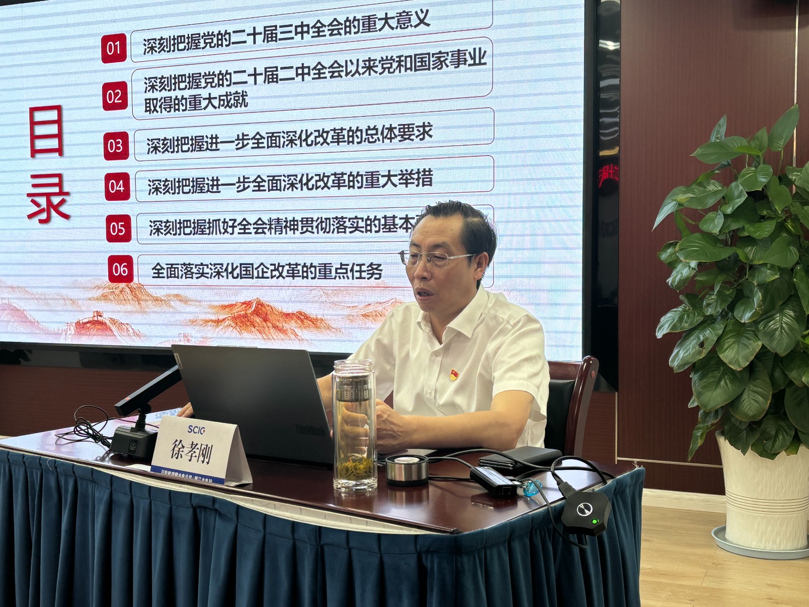 隨后進行了政治理論學(xué)習(xí),徐孝剛在第一議題學(xué)習(xí)中領(lǐng)學(xué)了習(xí)近平總書記在黨的二十屆三中全會第二次全體會議、慶祝全國人民代表大會成立70周年大會、主持召開全面推動黃河流域生態(tài)保護和高質(zhì)量發(fā)展座談會上的重要講話精神及在甘肅考察時的重要指示精神。會議還傳達學(xué)習(xí)了王曉暉在成都市領(lǐng)導(dǎo)干部大會、全省科技大會上的講話精神,省國資委《以施工動火作業(yè)為重點的消防安全專項整治行動方案》《關(guān)于切實加強近期高溫天氣防范應(yīng)對工作的通知》等近期文件精神,法治專題傳達學(xué)習(xí)貫徹習(xí)近平總書記關(guān)于法治工作的重要論述,進行了廉政警示教育學(xué)習(xí),黨員代表作了題為《重溫彝海結(jié)盟故事,感悟團結(jié)奮進力量》的分享式領(lǐng)學(xué)。