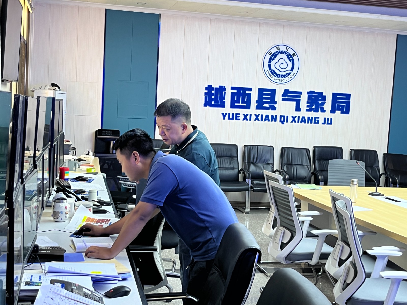 進入越西縣氣象局,葉勁馳一行進入越西縣國家氣象站、縣氣象服務(wù)中心,實地查看了越西縣雨情信息收集系統(tǒng),深入了解預(yù)警信息制作、發(fā)布和氣象數(shù)據(jù)的采集、傳輸、處理等全流程信息化建設(shè)情況。