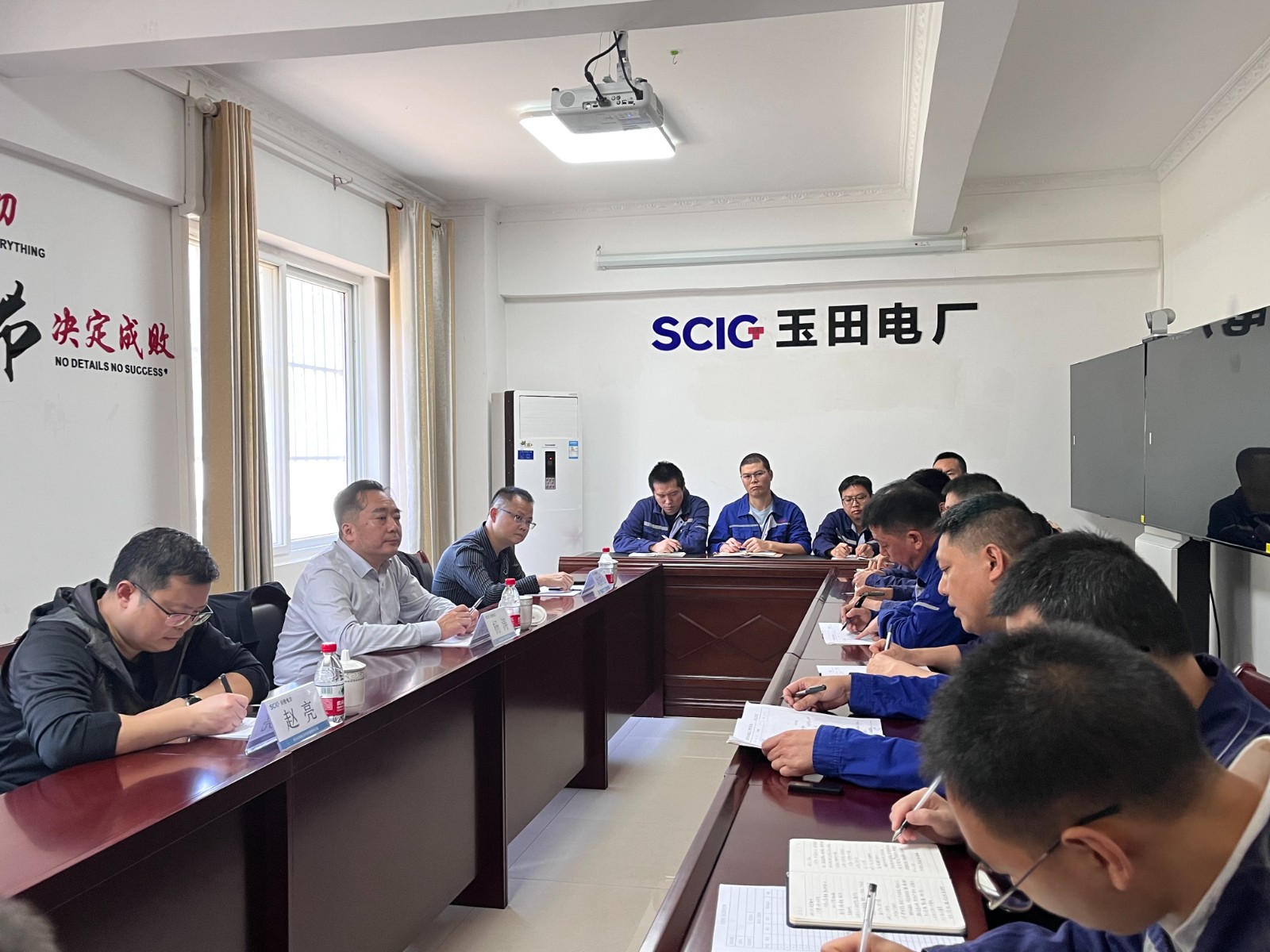 楊濤一行在玉田電廠黨支部書(shū)記、廠長(zhǎng)葉勁馳陪同下,對(duì)電廠水工建筑、機(jī)電設(shè)備、中控室、主副廠房、升壓站等區(qū)域進(jìn)行全面檢查。隨后召開(kāi)座談會(huì),聽(tīng)取玉田電廠各部門(mén)負(fù)責(zé)人關(guān)于設(shè)備檢修維護(hù)消缺情況、安全生產(chǎn)管理、運(yùn)營(yíng)發(fā)展、黨建工作等方面的工作匯報(bào)。