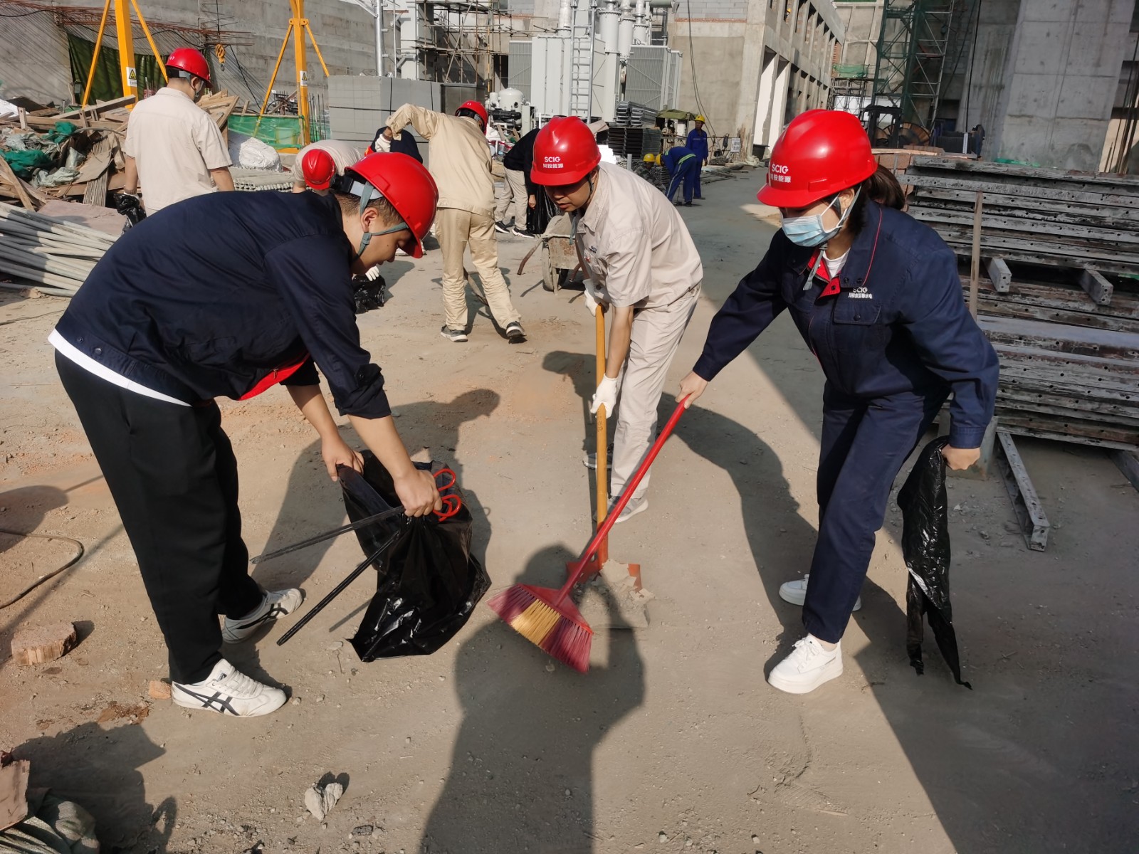 活動(dòng)開(kāi)始前,安全環(huán)保部經(jīng)理唐云宏從安全生產(chǎn)應(yīng)急知識(shí)、工地安全防護(hù)和注意事項(xiàng)方面進(jìn)行了簡(jiǎn)要培訓(xùn),提醒、督促大家在施工現(xiàn)場(chǎng)一定要做到“抬頭看天,低頭看路”,認(rèn)真做好安全防護(hù),隨時(shí)保持安全警惕性。隨后,各支部黨員同志、志愿者們斗志昂揚(yáng)、團(tuán)結(jié)協(xié)作,分為三個(gè)小組開(kāi)展工地清掃、整治衛(wèi)生死角活動(dòng),大家手持垃圾袋、掃帚、火鉗等工具,對(duì)壩頂、GIS樓、上游導(dǎo)流明渠、鋼筋場(chǎng)等區(qū)域進(jìn)行了集中清理整治,共同營(yíng)造了干凈整潔的施工環(huán)境。