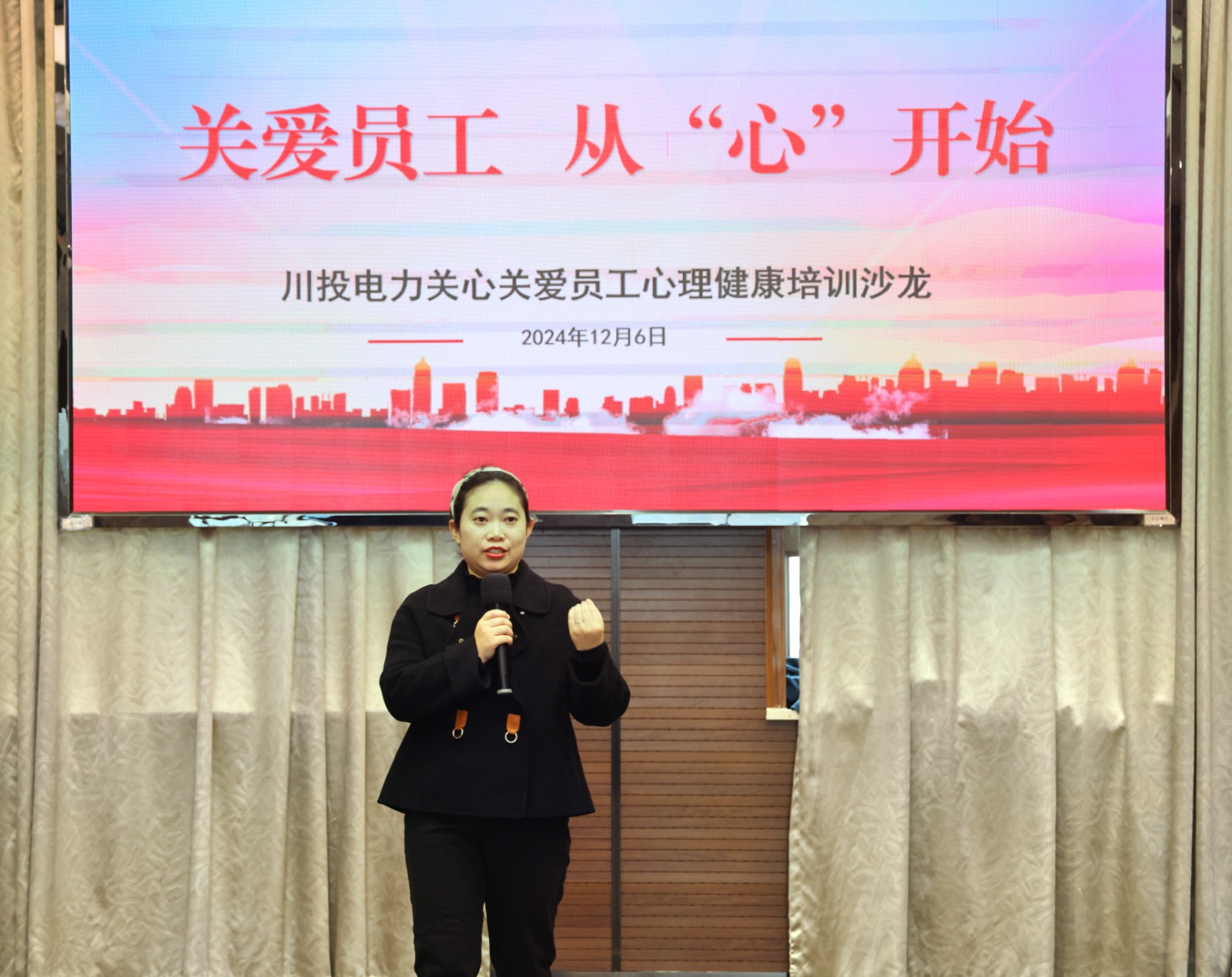 按照川投電力公司“四季暖陽”員工關(guān)愛行動工作部署,為提高員工心理素質(zhì),保持良好狀態(tài),提高工作效率,增強企業(yè)凝聚力和競爭力,近日,川投電力公司人力資源部、工會辦公室組織開展了關(guān)心關(guān)愛員工心理健康培訓(xùn)沙龍,為本部員工送去冬日的溫暖。