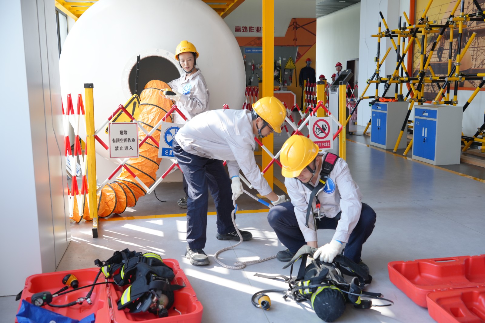 開(kāi)幕式后,比賽緊扣“人人講安全、個(gè)個(gè)會(huì)應(yīng)急”,設(shè)置了“火災(zāi)逃生”和“有限空間救援”兩個(gè)極具挑戰(zhàn)性的項(xiàng)目。在火災(zāi)逃生項(xiàng)目中,模擬火災(zāi)現(xiàn)場(chǎng)煙霧彌漫,警報(bào)聲尖銳刺耳,參賽隊(duì)員們迅速反應(yīng),有條不紊地撤離模擬火災(zāi)現(xiàn)場(chǎng)。有限空間救援項(xiàng)目更是考驗(yàn)重重,隊(duì)員們熟練操作,分工明確、密切配合,充分展現(xiàn)了電力職工的專(zhuān)業(yè)素養(yǎng)、應(yīng)急處置能力和團(tuán)隊(duì)協(xié)作能力。