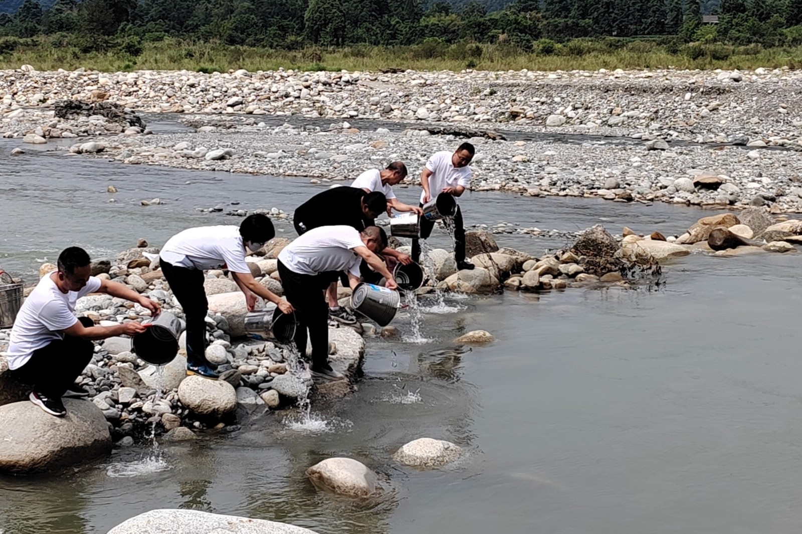 活動現(xiàn)場,在屬地政府、主管部門及群眾代表的見證和參與下,公司員工們將一尾尾活蹦亂跳的魚苗緩緩送入清澈的河水中,陽光下銀鱗閃爍的喜人場面引來岸邊群眾陣陣掌聲。本次活動投放的1萬尾齊口裂腹魚魚苗為湔江河道特有魚種,且按放流尺寸規(guī)格嚴格挑選確保其在自然水流環(huán)境中的適應生存能力,對于恢復所在水域水生生物資源,促進生態(tài)系統(tǒng)平衡具有重要的意義。