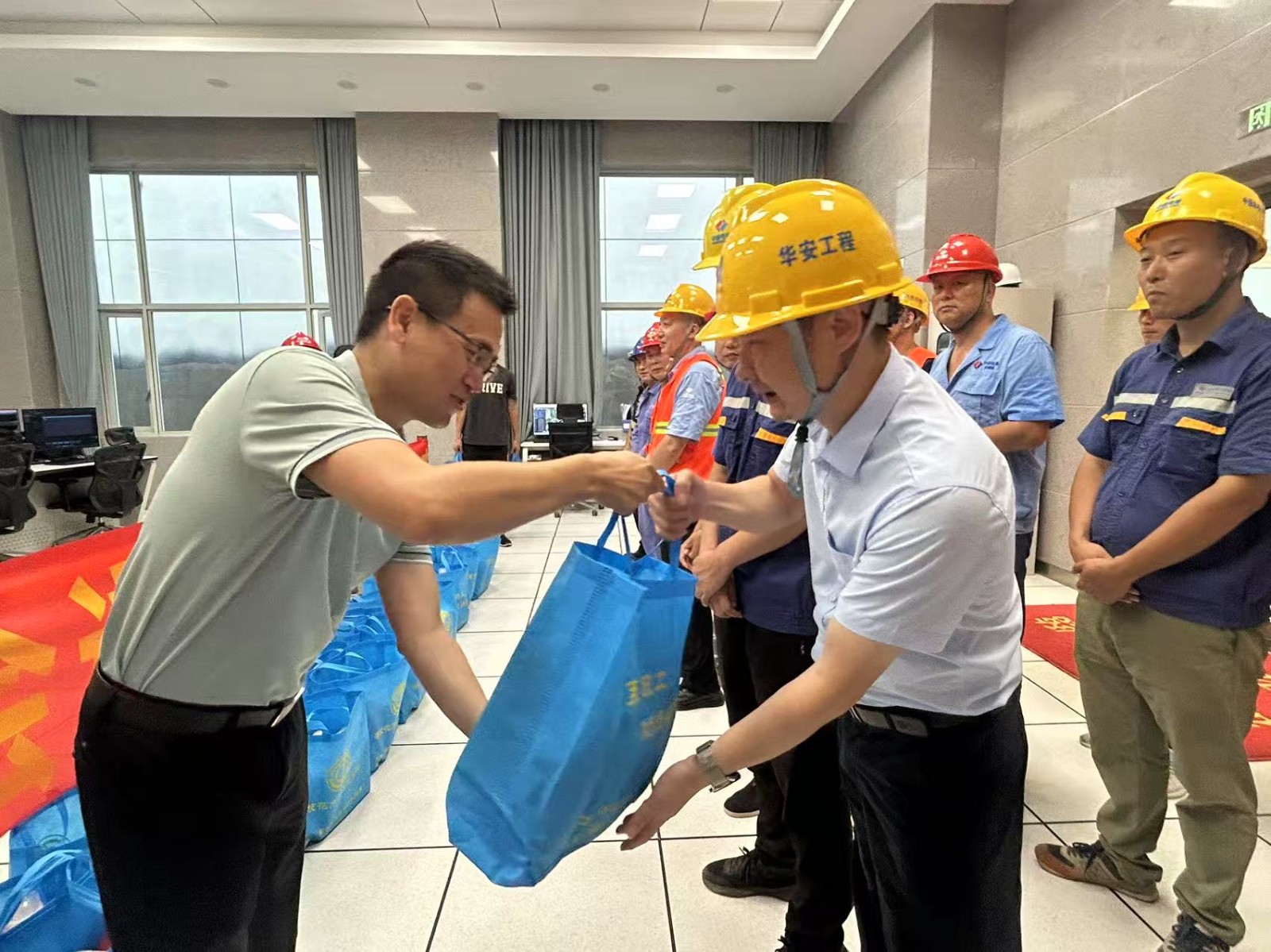 張平一行在現(xiàn)場(chǎng)了解了銀江水電站工程建設(shè)和安全生產(chǎn)情況,向一線人員送上了洗發(fā)露、沐浴露、洗衣液等清涼物資300余份?!肮?huì)送來的不僅是清涼,更是暖心!”大家紛紛表示,雖然天氣炎熱,但感受到了“娘家人”的貼心關(guān)懷,一定會(huì)克服高溫困難,時(shí)刻牢記“安全第一、生命至上”理念,以更加飽滿的熱情投入工作中。