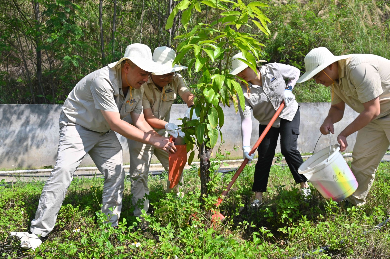 2023年,為貫徹落實(shí)習(xí)近平生態(tài)文明思想、踐行“綠水青山就是金山銀山”的理念,攀水電黨總支與金河村黨委組織開展了植樹共建活動(dòng),一棵棵芒果樹在銀江安家落戶,共建果園由此誕生。公司職工們?cè)诿β档墓こ探ㄔO(shè)和生產(chǎn)運(yùn)行之余積極為果樹除草施肥、維護(hù)修枝,在大家的共同維護(hù)下,共建果園長(zhǎng)勢(shì)良好,逐漸開始掛果、成熟。