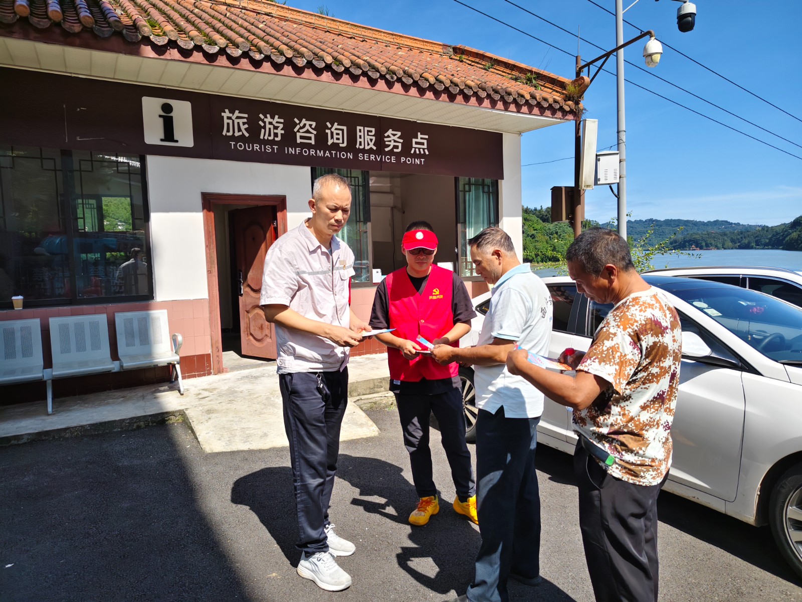 活動(dòng)現(xiàn)場(chǎng),志愿者耐心地為游客提供景區(qū)景點(diǎn)、游覽路線、交通信息等咨詢服務(wù),幫助游客規(guī)劃合理的游覽行程,確保游客能夠順利、愉快地游覽景區(qū)。在景區(qū)停車場(chǎng)區(qū)域,協(xié)助景區(qū)工作人員維持交通秩序,引導(dǎo)游客有序停車,保障了停車場(chǎng)的暢通和游客的安全。黨員志愿者們還積極開展《中華人民共和國(guó)反有組織犯罪法》宣傳活動(dòng)。向他們發(fā)放宣傳手冊(cè),提高游客對(duì)有組織犯罪的認(rèn)識(shí)和防范意識(shí),引導(dǎo)廣大游客自覺遵守法律法規(guī),共同維護(hù)社會(huì)和諧穩(wěn)定。