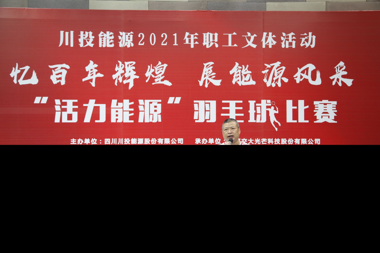 比賽在莊嚴(yán)的升國(guó)旗、唱國(guó)歌儀式中開(kāi)幕,伴隨著雄渾高亢的《義勇軍進(jìn)行曲》旋律,全體人員肅立,高唱中華人民共和國(guó)國(guó)歌。隨后,各參賽代表隊(duì)依次入場(chǎng)進(jìn)行風(fēng)采展示,運(yùn)動(dòng)員代表、裁判員代表先后宣誓。公司黨總支書(shū)記、總經(jīng)理劉成輝代表承辦方致開(kāi)幕詞。楊洪代表主辦方講話,對(duì)此次比賽的舉辦表示祝賀,對(duì)承辦本次羽毛球比賽的交大光芒公司全體同仁表示衷心感謝,并向全體運(yùn)動(dòng)員、裁判員、工作人員致以親切慰問(wèn),他要求,全體參賽選手要在比賽中繼續(xù)發(fā)揚(yáng)體育精神、弘揚(yáng)光榮傳統(tǒng)、賡續(xù)紅色血脈,樹(shù)立堅(jiān)定勝利的信心,不怕失敗的恒心,不畏艱難的決心。他強(qiáng)調(diào),川投能源全體職工要積極響應(yīng)習(xí)近平總書(shū)記在慶祝中國(guó)共產(chǎn)黨成立100周年大會(huì)上的號(hào)召,用飽滿的熱情、拼搏的信念、團(tuán)結(jié)的精神,繼續(xù)為實(shí)現(xiàn)中華民族偉大復(fù)興不懈努力,努力為黨和人民爭(zhēng)取更大光榮。
