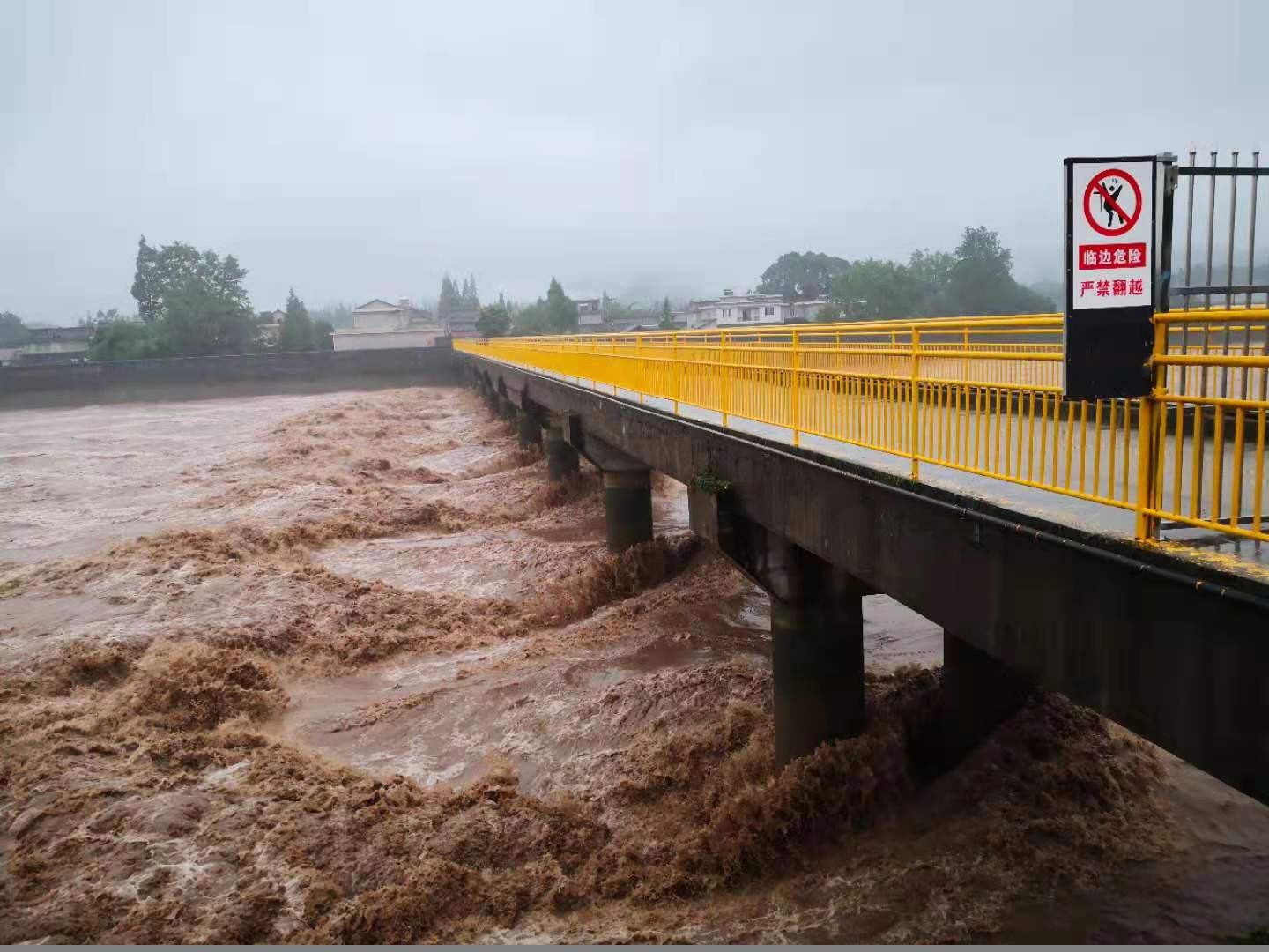 8月18日凌晨,青衣江上游至百花灘電廠強降雨一直持續(xù),電廠組織各部門及時會商研判,第一時間提前騰庫,6:31,電廠停機避峰,組織人員開展巡視檢查,對重點部位、重點區(qū)域加強監(jiān)測,在預(yù)判流量將達到8000m2/s前拆除了尾水渠2號橋橋梁兩側(cè)的防護欄桿,并安排人員在尾水渠2號橋兩側(cè)拉設(shè)了警戒線,禁止人員從2號橋通過。9:55最大洪峰流量(9880 m3/s)安全通過百花灘電廠。